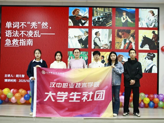 10月15日下午,汉中职业技术学院J7-102教室内座无虚席,英语社主办的《单词不“秃”然,语法不凌乱——英语学习急救指南》专题讲座在此火热开讲。作为社团嘉年华预热活动,讲座精准锚定学子“记词难、理法难”的痛点,刚一启动便吸引众多学子到场,专注的学习氛围扑面而来。