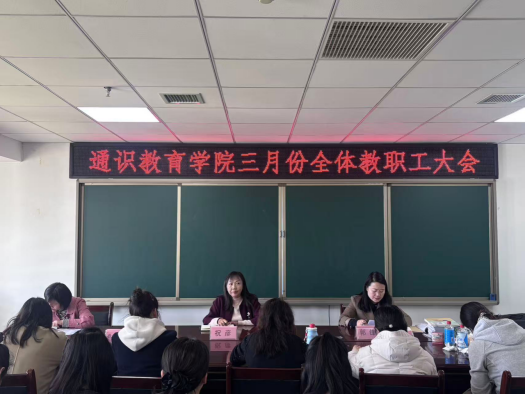 3月11日下午,通识教育学院在行政楼511召开三月份全体教职工大会,会议由综合办主任郭锋主持,全体专兼职教师参会。