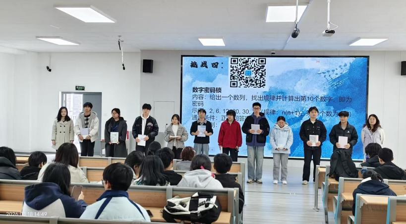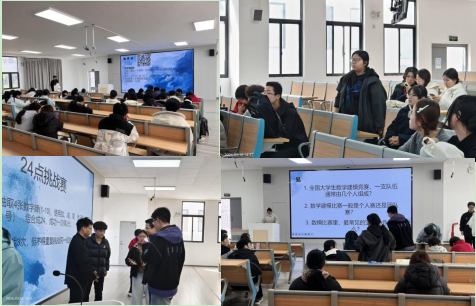 活动设置四大趣味挑战环节:π的奇妙世界、24点挑战赛、数学建模小问答与数字密码锁。在π的背诵挑战中,同学们比拼记忆,感受数学常数的魅力;24点运算赛里,大家灵活运用四则运算,在限时挑战中碰撞思维火花;数学建模小问答环节,同学们积极作答,巩固建模基础知识;数字密码锁挑战则考验大家的观察力与逻辑推理能力,现场氛围热烈而有序,充分展现了思维的乐趣。