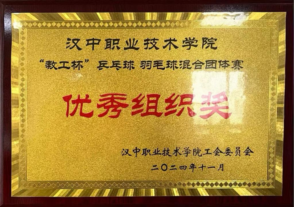 荣获 汉中职业技术学院‘教工杯’乒乓球 羽毛球混合团体赛 “优秀组织奖”